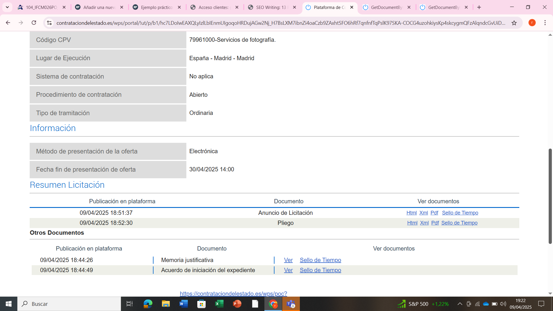 Leyendo el anuncio vemos que nos aparece un montón de información relativa a la licitación, pero de toda esa información, para tomar la decisión de participar nos interesa lo siguiente: